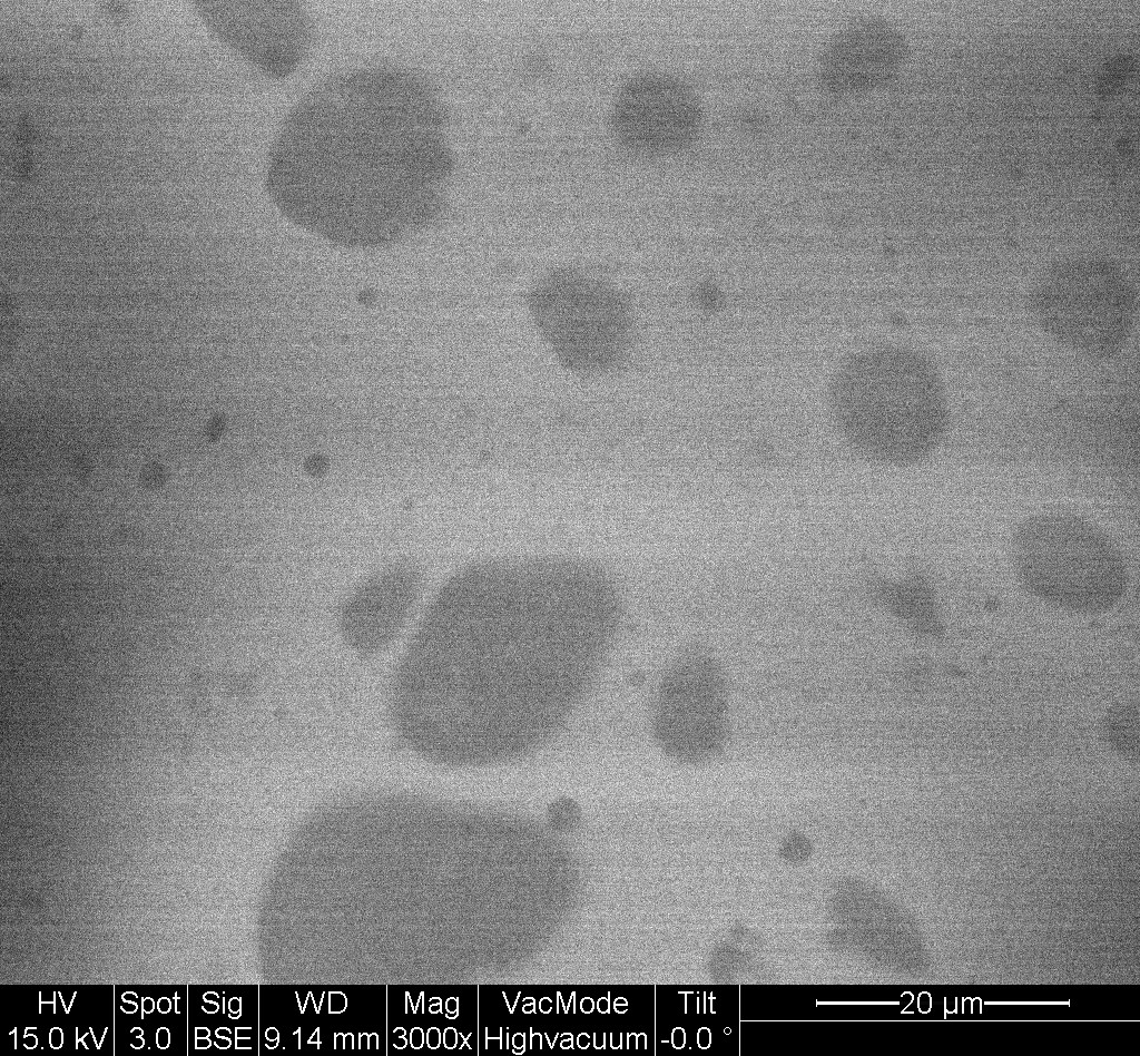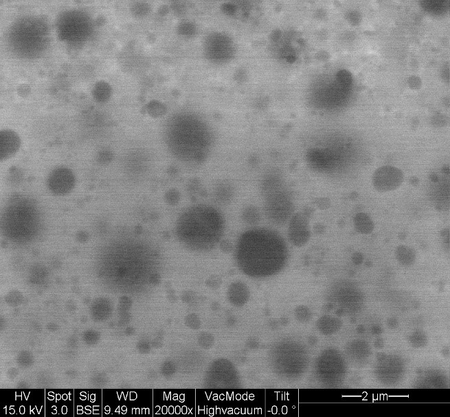 我們可以從SEM畫面中看到,這些油分子有大有小。較小的油分子可以比較穩定的狀態存在於液體當中;反之,較大的油分子則容易形成油水分離的狀態。